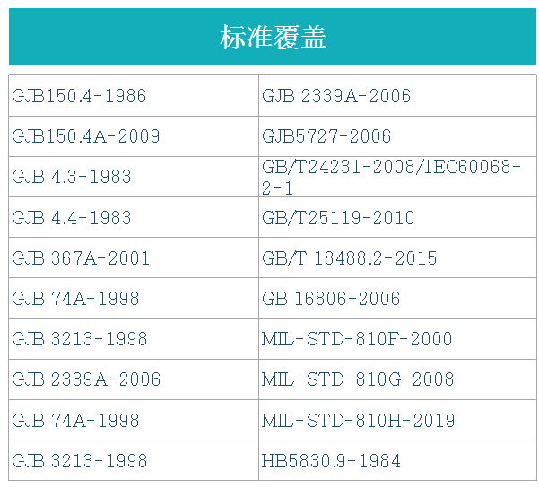 低温试验包括3个试验程序:贮存、工作和拆装操作。贮存程序用于检查贮存期间的低温对装备在储存期间和贮存后的安全性,以及贮存后对装备性能的影响。工作程序用于检查装备在低温环境下的工作情况。拆装操作程序用于检测操作人员穿着厚重的防寒服组装和拆卸装备时是否容易。